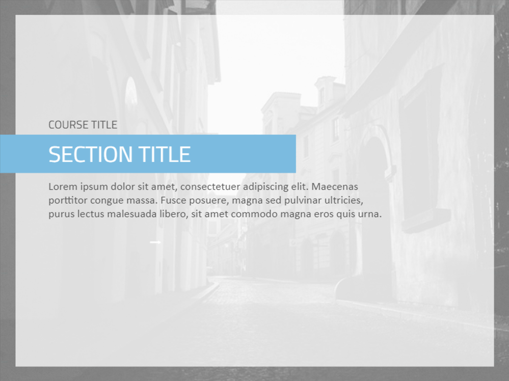 One simple way to give your e-learning course both a nice visual touch and a personal feel is to include a background photo. However, background photos can be loud and distracting, and it can be difficult to read on-screen text when it’s on top of photos. Take this slide, for example: