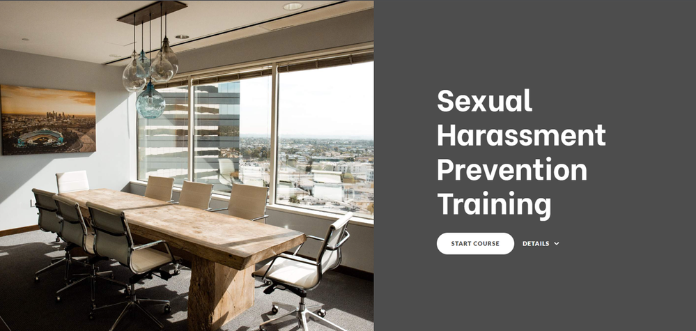 I think this Sexual Harassment Prevention Training template already sets the right tone, thanks to its course cover photo, which hints at the gravity of this weighty workplace topic.