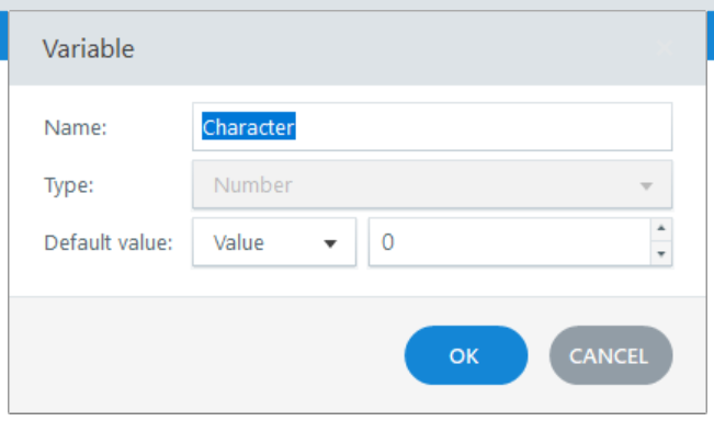 Now you need to add a variable that will control which avatar is visible throughout the course. To do that, create a new number variable with a default value of 0.