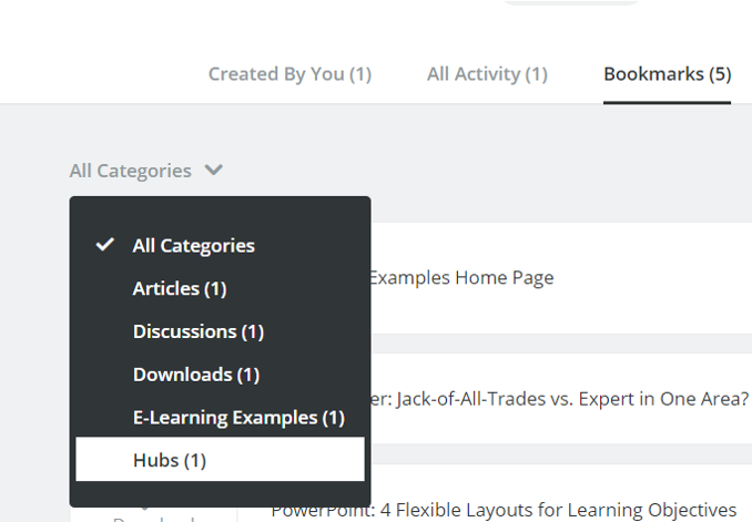 Once bookmarked, this hub will appear under My Bookmarks on the profile drop-down menu.
