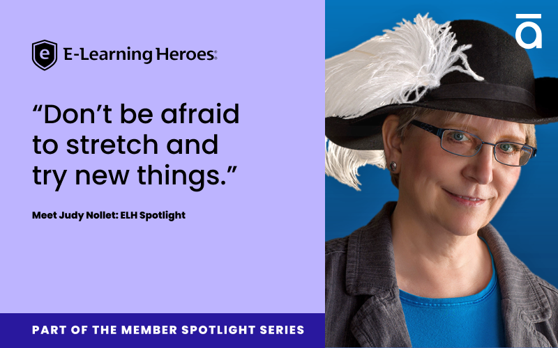 Community has played a steady, supportive role throughout Judy’s career. “I received lots of helpful advice from generous colleagues. And the Articulate community is invaluable. I’ve learned so much simply from reading comments by Super Heroes like Phil Mayor and the late Walt Hamilton.”