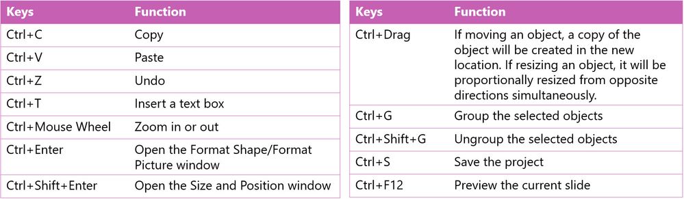 For a more extensive keyboard shortcuts list, check out this article: Storyline 360: Using Keyboard Shortcuts