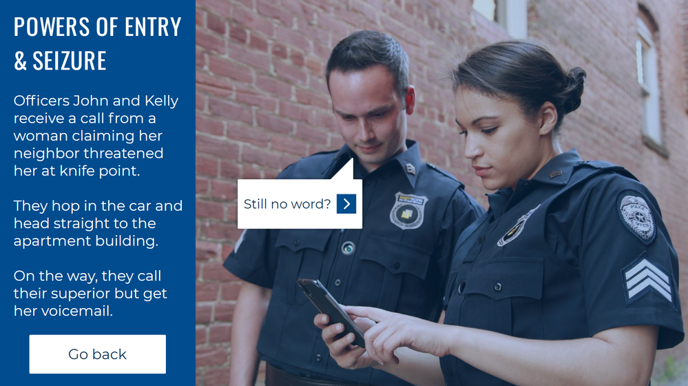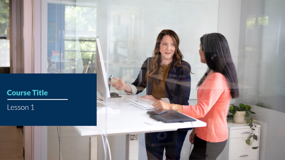 Photo backgrounds are another great way to establish context, especially if you’re creating a scenario-based course. The key is to think about what the setting is for the characters or the information you’re presenting.