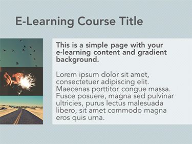 Using photographic images or illustrations as backgrounds can tell a story and define the stage for your e-learning course. If chosen well, your learners will immediately know the theme of the course or module. They can create a certain mood or atmosphere and spark the learner’s imagination. This type of background can be so engaging that your learners might not even notice the difference between background and foreground.
