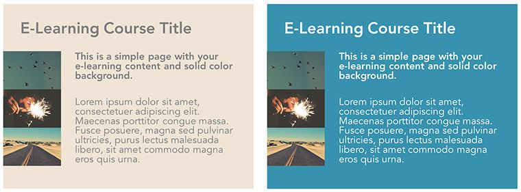The backdrop for each slide should support rather than detract from your awesome content and interactive elements. The good news is, there are myriad ways to positively influence the learning ambiance simply by manipulating the background. So let’s take a look at issues to consider when choosing a background for your e-learning course: