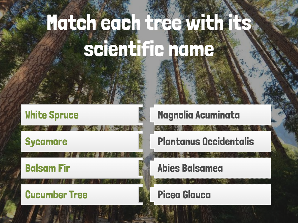 For example, in this course on trees, learners need to match the common tree names with the scientific names: