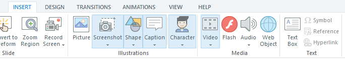 When we gather information through text or numeric data entry fields, we usually want to display it again to the user later on in the course. The way we display information that is stored in a variable is through what’s called a reference. The icon to insert a reference is located under the insert tab of the Storyline ribbon, beneath the text subcategory. You might notice that by default it is grayed out and disabled.
