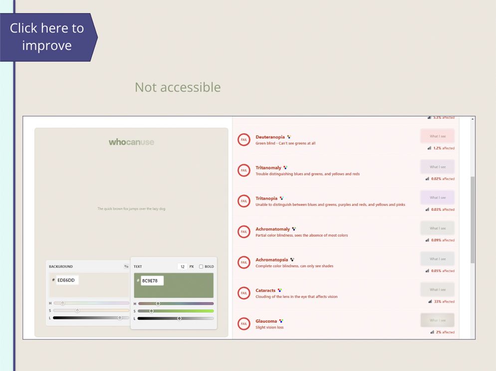 My entry is a quick-click interaction focused on color contrast for those with visual impairments. I used motion paths and triggers related to the "object intersects" option to make the sliding reveal happen.