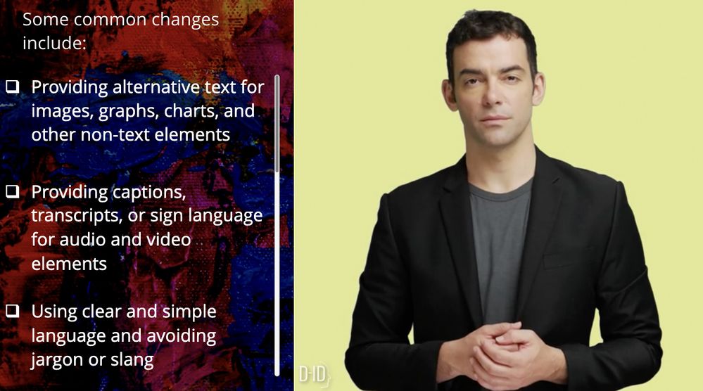 I tried to maximize the accessibility features of Articulate, especially during the last video. Background music is on, but you can turn it off. Closed captioning and transcript are available. Video presenter allows for lipreading for those who need it.