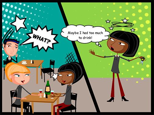 Gorgeous comic book design in this branching scenario designed to help learners practice responding to drinking and driving.