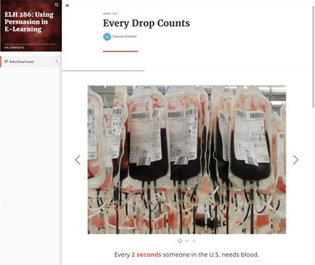 This week’s challenge asked course designers to persuade learners to consider donating blood. Examples include: interactive games, storytelling, drag-and-drops, video scenarios, and much more!