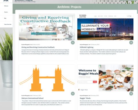 - My tip would be to try creating a website for your portfolio. With programs like Wix.com, it is a user-friendly way to have freedom in your design. There is always more to learn on every front in instructional design, design as a whole, etc.
