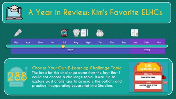 The weekly challenges are ongoing opportunities to learn, share, and build your e-learning portfolios. You can jump into any or all of the previous challenges anytime you want. I’ll update the recap posts to include your demos.