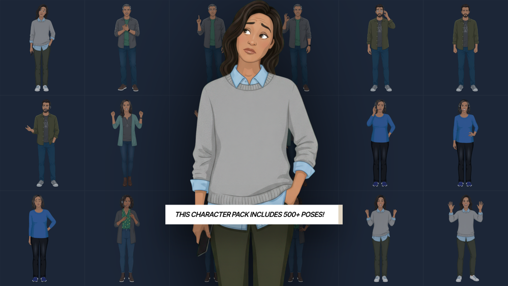 This team consists of 10 characters of the same style with over 500 poses and complimentary backgrounds. This was shared in Quick Tips 122 where we discussed how to use them in your e-learning courses.