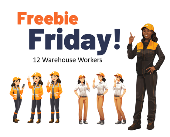 Here are 12 free warehouse worker illustrations that I created while practicing my AI prompting skills. Includes 14 poses.