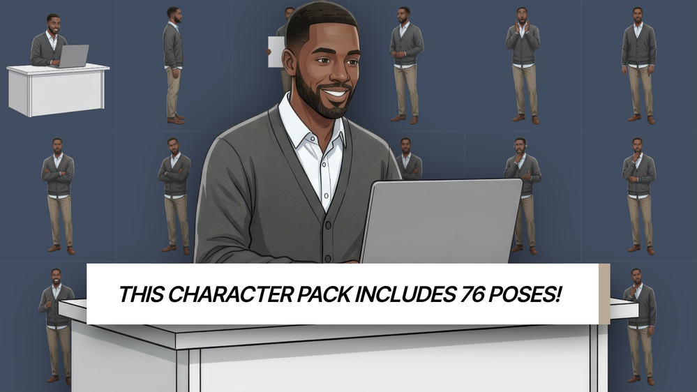This illustrated character comes with 16 different poses. I upscaled the images and gave them transparent backgrounds. I create these while practicing AI prompting techniques. Feel free to use as you wish for personal or commercial projects.