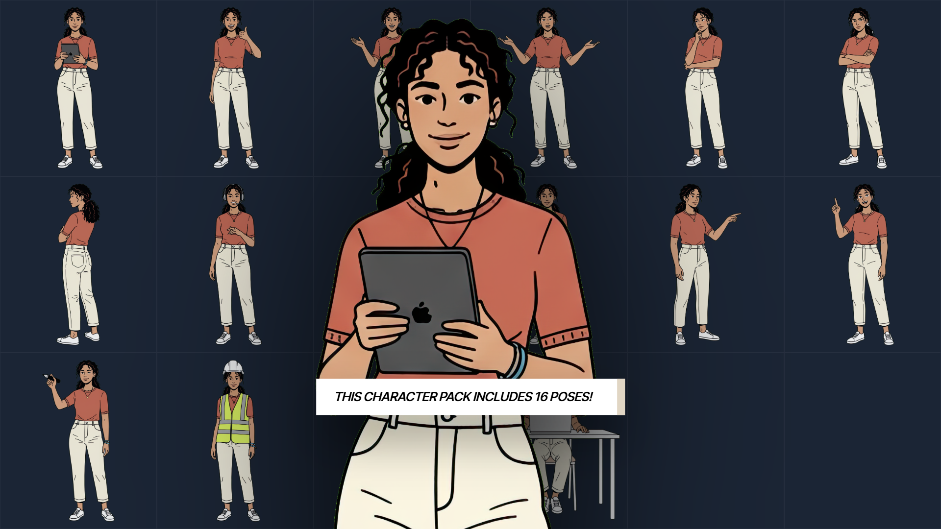 This illustrated character comes with 16 different poses. I upscaled the images and gave them transparent backgrounds. I create these while practicing AI prompting techniques. Feel free to use as you wish for personal or commercial projects.
