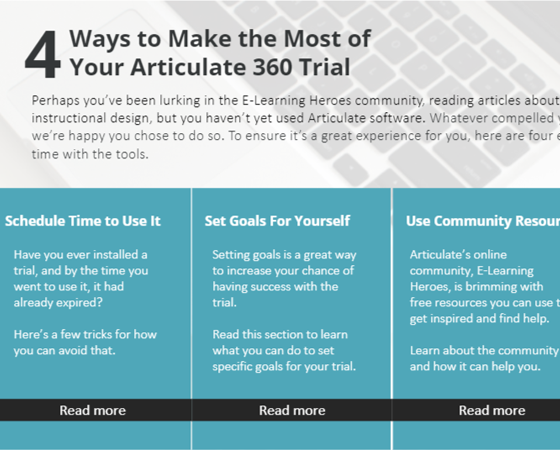 This interaction will not only teach you how to make the most of your free, 30-day Articulate 360 trial, but also serves as a free template you can reuse. Use this PowerPoint process template to sho...