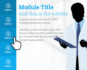 Pair your healthcare icons with this stunning tabs template by Montse.  You can also download a complete version of the Storyline 360 course starter template. Explore this project