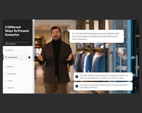 E-learning scenarios provide a safe space for learners to practice real-world situations and see the consequences of their decisions. This Rise 360 course showcases a variety of ways you can combine...