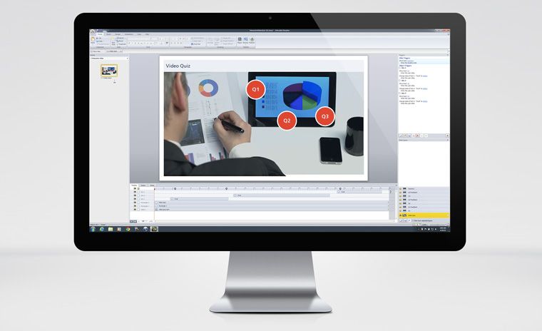 This Storyline 1 interaction features customizable buttons, quiz questions, feedback layers. A sample video is included to show you how the timing and interactivity were created.