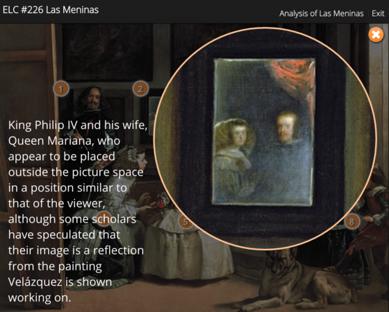 This beautiful Storyline project uses clickable markers, layers, and image close-ups to help learners explore the fascinating details hidden in Las Meninas, an artistic masterpiece by Diego Velázquez.