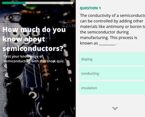 Here's an easy-to-customize quiz that uses the free-form pick one interaction, a customized quiz results screen, and a simple progress meter to test your knowledge of semiconductors. View this pr...