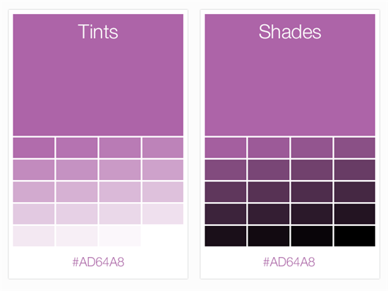 Here's a color guide to Radiant Orchid's tints and shades: