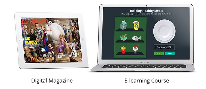 Digital magazines and e-learning courses have a lot in common. They both use the same design elements (text, graphics, audio, video) and often share similar layouts.