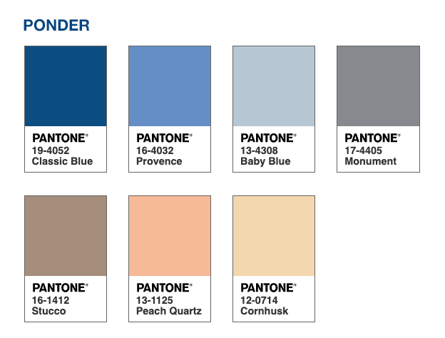 To help you get started using this year’s color, Pantone has created five different color palettes and recommended color harmonies using Classic Blue.