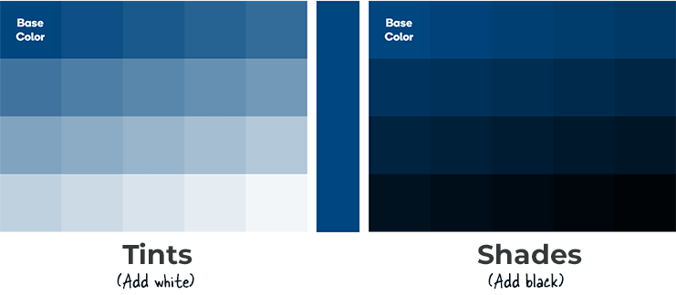 Tints are created by mixing values of white with your base color while shades are created by mixing values of black.