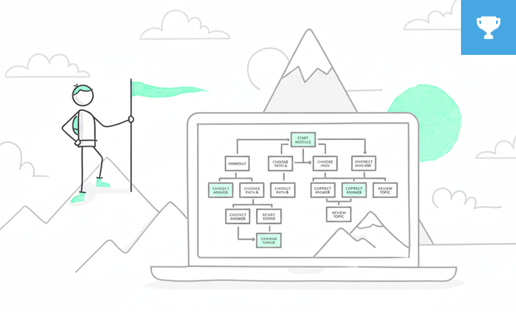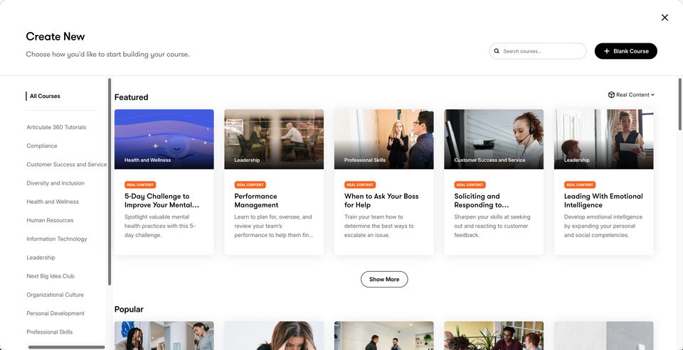 You can use either Rise or Storyline for this one. If you’re short on time, the quickest way is just to use Rise, grab one of the Real Content templates, and add your scenario block or Storyline block right at the start.