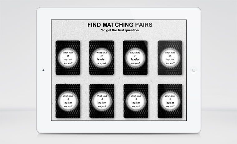 Here’s a creative matching game template that requires learners to find the matching pairs before moving to the first question.