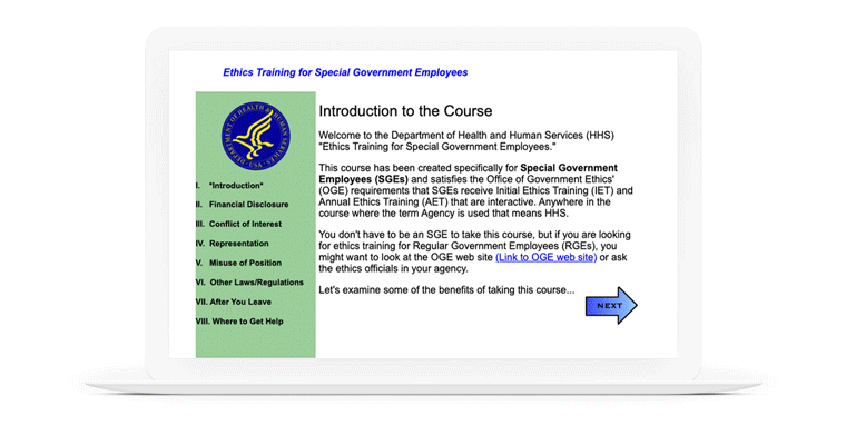 This week your challenge is to build an e-learning game, presentation, or interaction using the ethics training course and content from HHS. You don’t have to rebuild the entire course. Just include enough slides to show us where you’re going with your makeover.