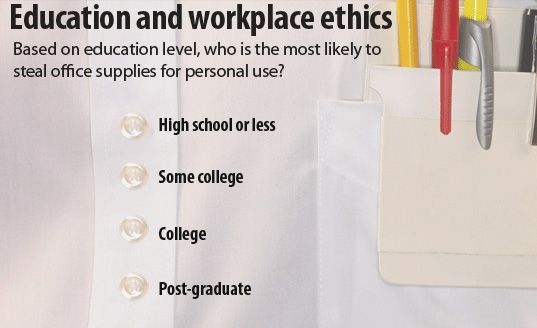 For example, many people think the less education you have, the more likely you are to steal. But the evidence shows that, in fact, people with college degrees and high school diplomas are just as likely to steal.