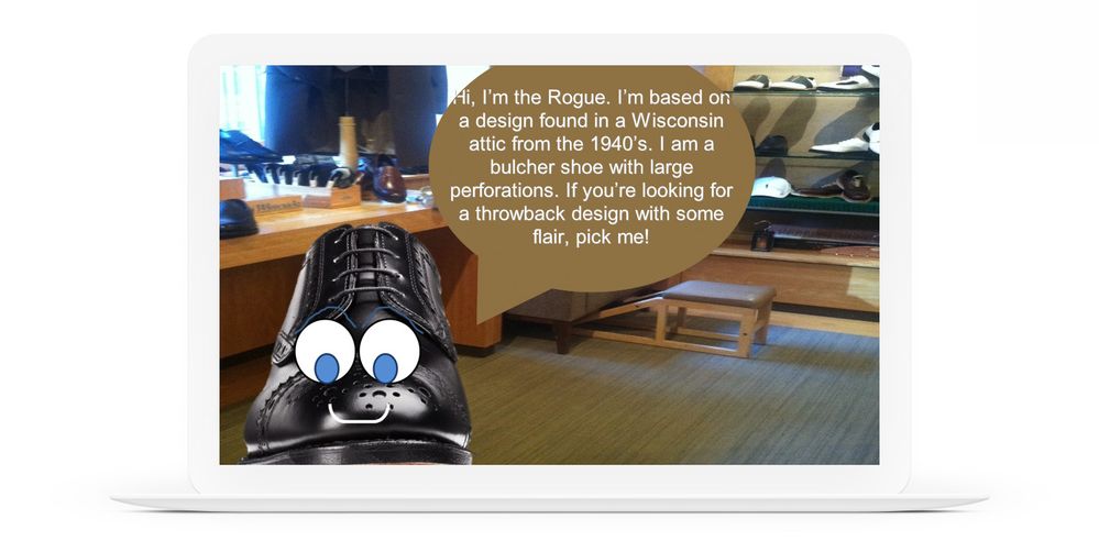 The example features a series of anthropomorphic shoes that help train salespeople on how to match shoe models and styles to customers. Each shoe played a role in the course by describing its history, unique design features, and when to choose each model. Pretty cool, right?
