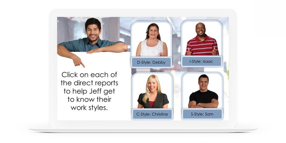 This meet-the-team interaction from Joe Waddington is a fantastic example of how lightbox slides can reuse content across an entire course.