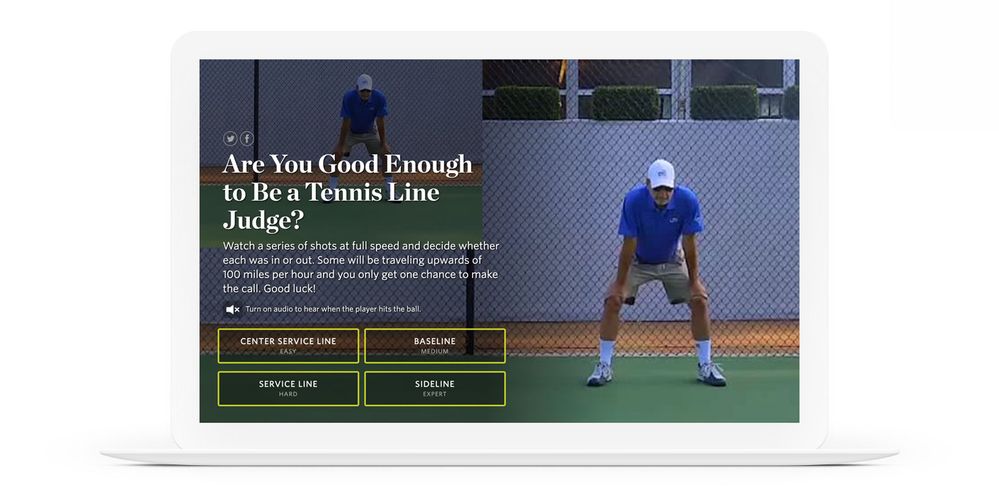 Here’s a great interactive video example that puts users in the role of line judges at the U.S. Open tennis tournament.