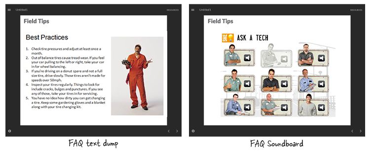 Are you looking to reduce on-screen text and bullet points? Soundboards are another presentation strategy for lists, FAQs, best practices, and expert tips. Here's another design mockup as an example:
