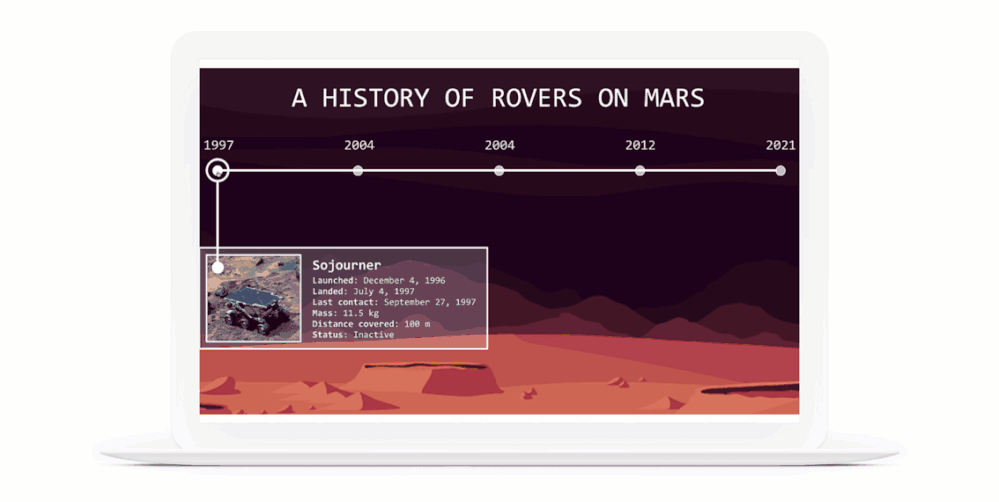 I really like this timeline example because it combines traditional timeline elements with sliders and motion paths to create an animated background effect.