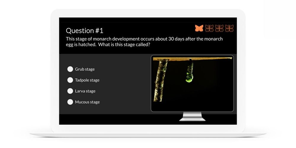 Video quizzes don’t need to be full-screen, immersive productions. Instead, keep things simple by using video to support the quiz. This example from Jodi shows how subtle videos can replace static images to create more engaging quizzes.
