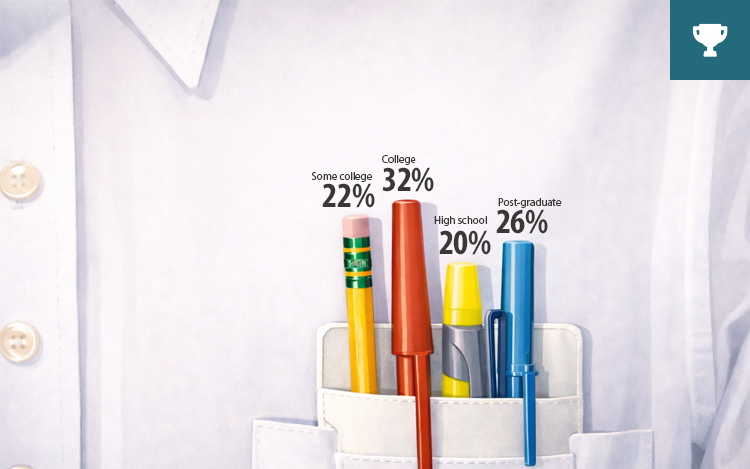 They use playful visual metaphors, like pencils for education or coffee cups for caffeine habits, to reinforce the topic without requiring extra explanation.