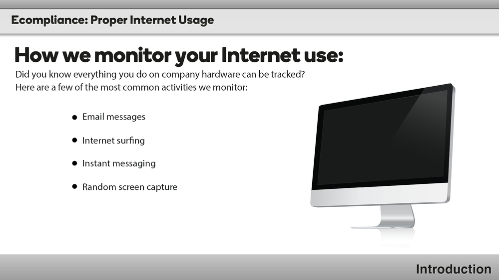 A typical company-focused slide explains what the organization monitors. It’s accurate, but it’s framed around the company's policy, not the learner.