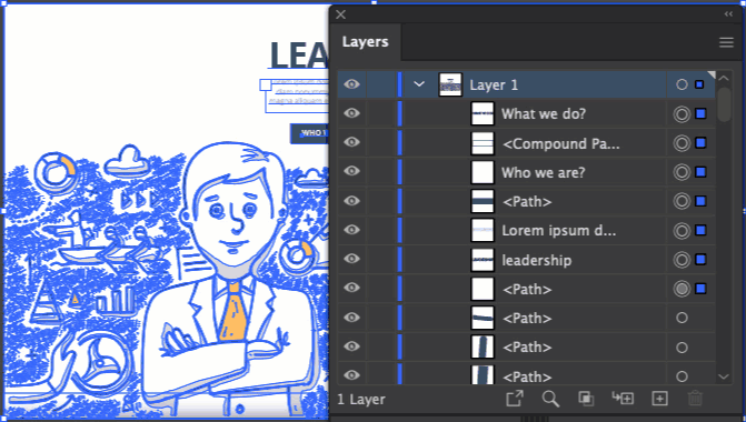 Depending on how complex the illustration is, you might see a lot of layers. I like starting with the smaller elements since they’re easier to select.