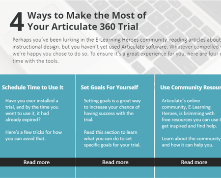 This interaction will not only teach you how to make the most of your free, 30-day Articulate 360 trial, but also serves as a free template you can reuse. Use this PowerPoint process template to sho...