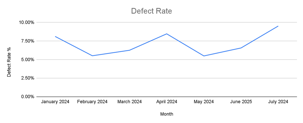 - July 2024 had a defect rate of 9.50%.