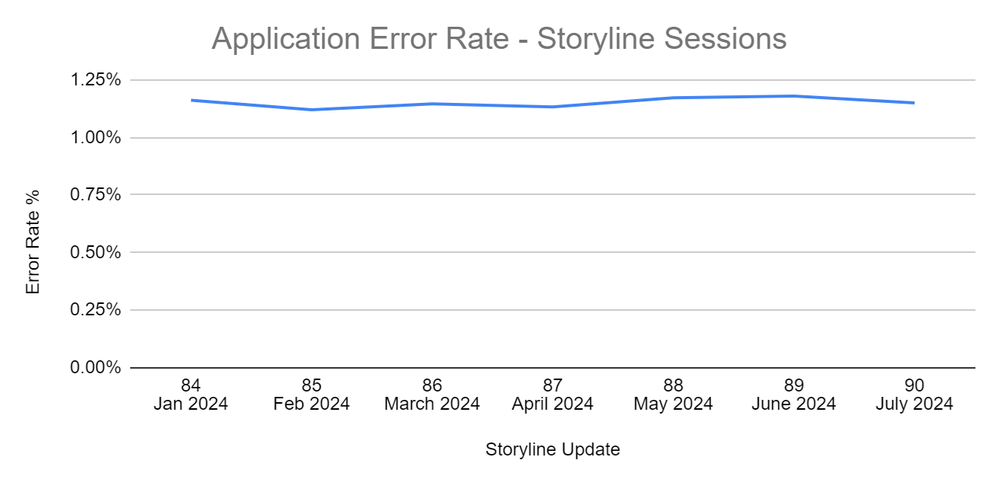 The application error rate for Storyline sessions has been hovering around 1.15% for the past six months and has continued to hold steady.