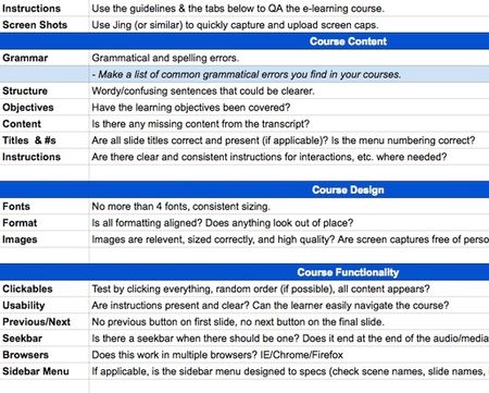 Here's a handy template of quality assurance questions you can use when reviewing courses. Learn more about it and get detailed instructions in this discussion.