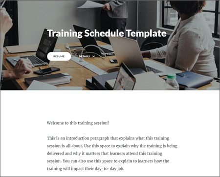This Rise training schedule is a great example of how you can use Rise to create a classroom tool for instructors to use in their blended training sessions.