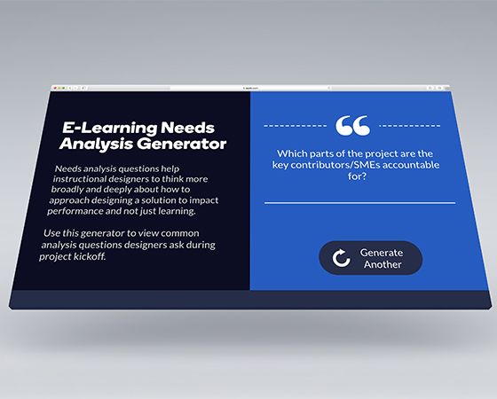 Using Storyline 360's random number variable, this e-learning needs analysis generator randomly presents common questions to ask during project kickoff.